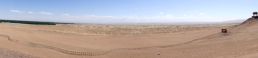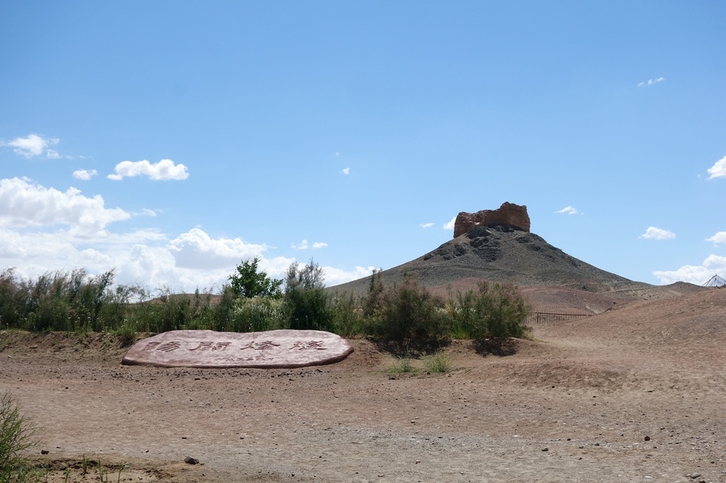 遠眺漢代烽燧遺址,一千年前這邊是古絲綢之路要道,歐洲與亞洲無數的商旅經過之處,繁榮一時,連唐玄奘西去天竺取經都要經過陽關,如經繁華落幕,孤留一座烽燧。