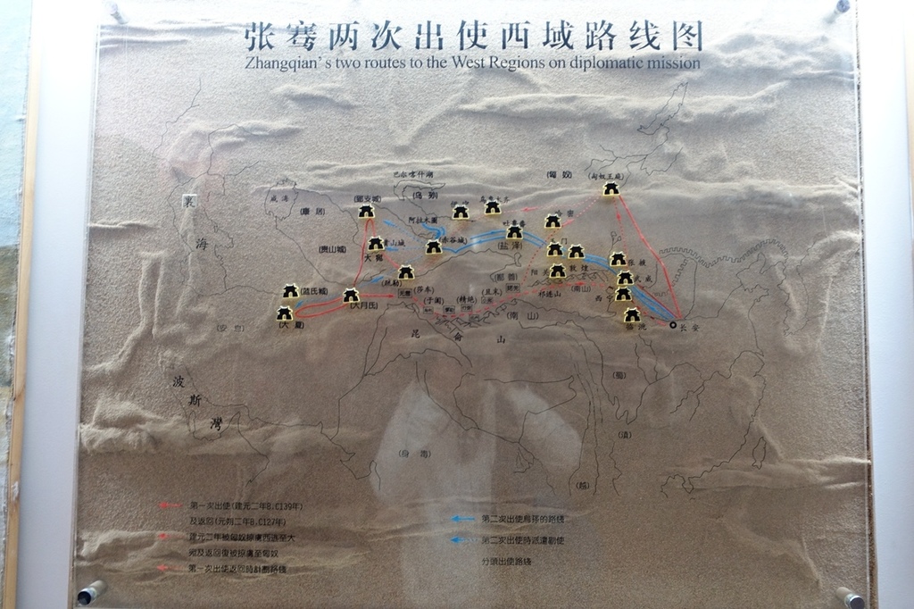 博物館內有ㄧ間房子是展出漢朝文物的,詳細記載西域的歷史,張騫通西域的路線圖。