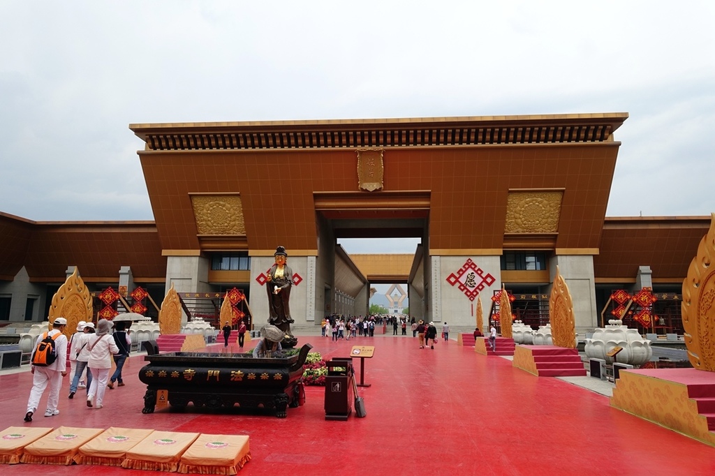 筆直在向前走,這座大道被稱為佛光大道,盡頭是合十舍利塔,為什麼進入景區要走這麼多路呢? 主要是大陸遊客眾多,景區浩大可以分散人流,再者可以凸顯景區規模,最重要的是這些道路有景區電瓶車,如果不想走路就要付錢搭車,也增加景區的額外收入。
