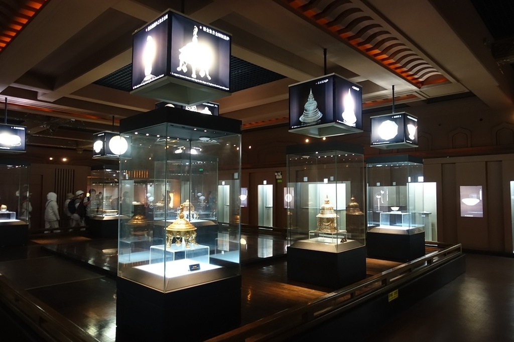 珍寶館內分為幾個展區,分別陳設了個中國各時期的地宮寶物,靜靜的躺在陳列館內。