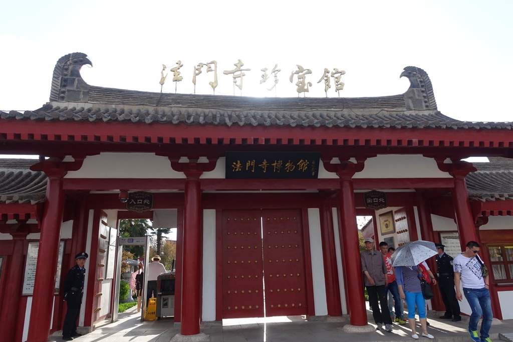 法門寺珍寶館為於法門寺寶塔旁,這裡是要另外花錢購票進入的,裡面展示了許多從法門寺地宮出土的文物。