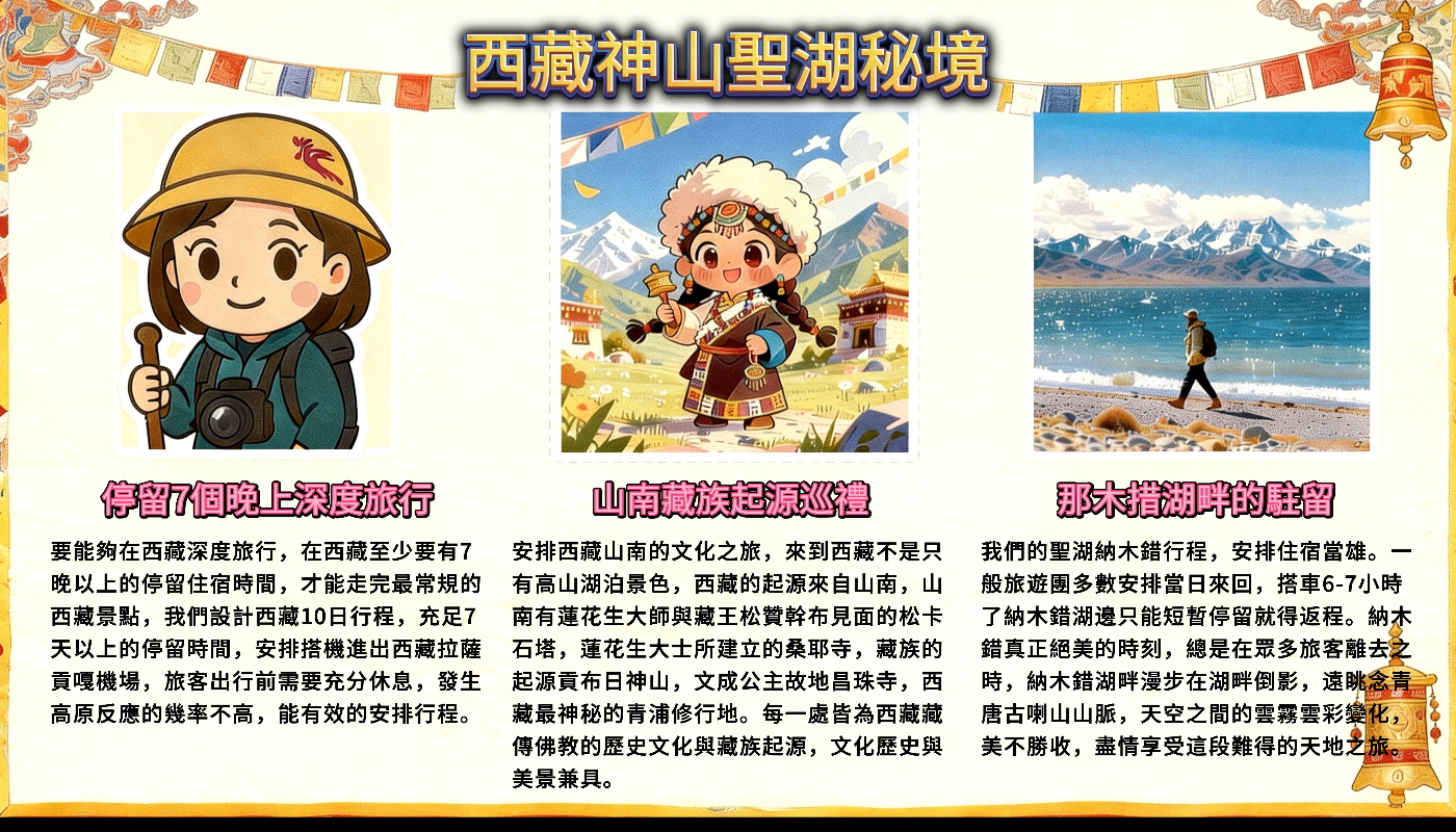 酒店早餐後,前往【桑耶寺】是西藏的第一座寺廟,赤松德贊授命建造,並請蓮花生大士主持桑耶的建設,建築群按照佛經中的大千世界佈局。桑耶寺又名「存想寺」、「無邊寺」。它始建於西元8世紀,是西藏第一座剃度僧人出家的寺院。寺內建築按佛教的宇宙觀進行佈局,中心佛殿兼具藏族、漢族、印度三種風格,因此也被稱作「三樣寺」。位於雅魯藏布江北岸的【松卡石塔】共有大小不同五座石塔雕刻而成,通體白色,均為整塊巨石雕刻而成,高度均為2米左右,建築年代不詳。據說這五座石塔是藏傳佛教最早的教派寧瑪派祖師蓮花生大士設計主持雕造的。是蓮花生大士為證明自己的法力,從虛空中變換出來的,充滿神話傳說,為幾座佛塔增添神秘色彩。五座石塔附近有許多摩崖造像,其中以無量壽佛為主題。【青樸修行地】位於西藏山南桑耶寺東北方向的瑞山山腰,是沙漠中的一塊綠洲,也是西藏諸多有名尊者聖人大師修行的地方,其中最有名的就是蓮花生大士和三世噶瑪巴。傳說大山裡曾有108座修行山洞、108座天葬台和108處神泉,還有蓮花生大士用手指在崖壁上刻畫的108幅佛像和佛塔圖歷史上曾在此修行過的寂護大師、蓮花生大士、藏王赤松德贊和「桑耶七覺士」之一後來成為著名的金剛乘大師的白若雜那等,都在青撲修行地留下了數不勝數的聖跡,最主要的是位於山頂的蓮花生修行洞格烏倉和下面的措傑洞、法王洞、魯堆瓊欽洞等。