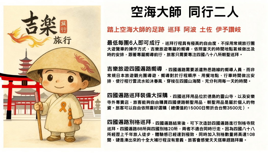 酒店早餐後,前往四國遍路的第一座寺廟靈山寺,德島縣發心的道場「日本古代阿波國」