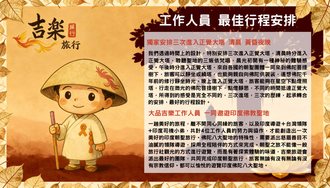酒店早餐後,搭乘內陸航班前往【瓦拉納西】古稱婆羅痆斯、波羅奈,一譯貝拿勒斯,是印度北方邦城市,位於恆河河畔。一般相信瓦拉納西在史前時代已有人居住,並是世界上少有的從史前時代到現代持續有人居住的城市,是印度教的一座聖城。抵達瓦拉納西後前往佛陀初轉法輪聖地的【鹿野苑】參觀鹿野苑遺跡公園、中文另名為仙人論處、仙人住處、仙人墮處、仙人鹿園等,位於印度北方邦瓦拉納西以北約10公里處,舊稱伽屍國,近世稱為貝那拉斯Benares。在這裡釋迦牟尼第一次教授佛法,佛教的僧伽也在此成立。鹿野苑是佛教在古印度的四大聖地之一。【五比丘迎佛塔】,是一座大型的覆缽型磚塔,據紀載是佛陀成道後從菩提迦耶前往鹿野苑,與五比丘相遇之處,佛塔上方的八角塔,是印度德里王朝時期,蒙兀兒帝國第二位皇帝胡木炎(阿克巴的父親)造訪時,地方官員為歡迎他所豎立的,佛塔上八角塔見證了印度多元文化與歷史。【鹿野苑博物館】內珍藏自鹿野苑出土之文物,博物館內一覽二千年前的石雕與阿育王弘揚佛法的標誌-獅子吼呈現眼前,現在已成為印度政府的國徽。