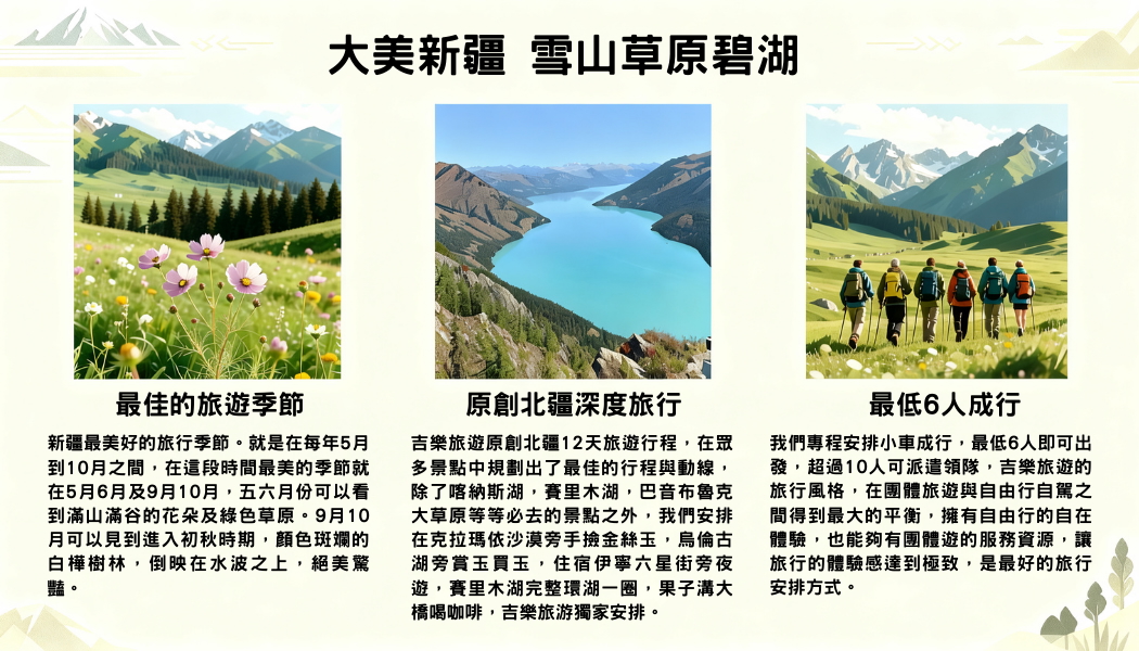 2026年參考出團日期6/10、8/20、9/18 6人成團