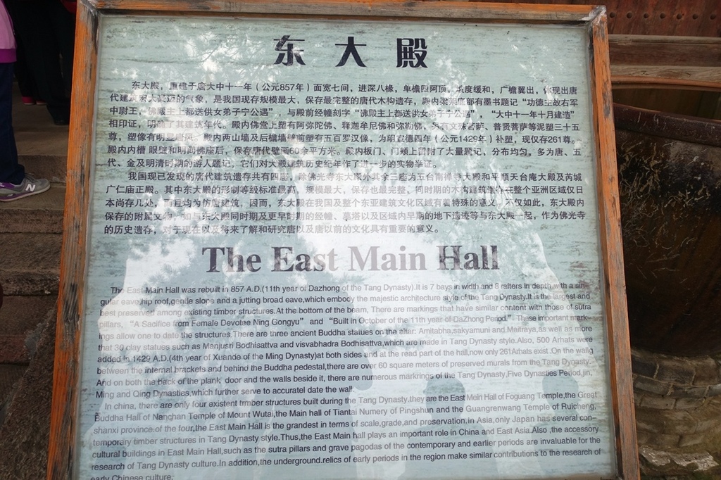 後來,到了唐宣宗大中年間,佛教再一次進入興盛時期,才在一個名叫願誠的法師主持下在原址予以重建。其中,山腰上的東大殿至今保持了唐代重建時的風貌,是不可多得的唐代瑰寶。