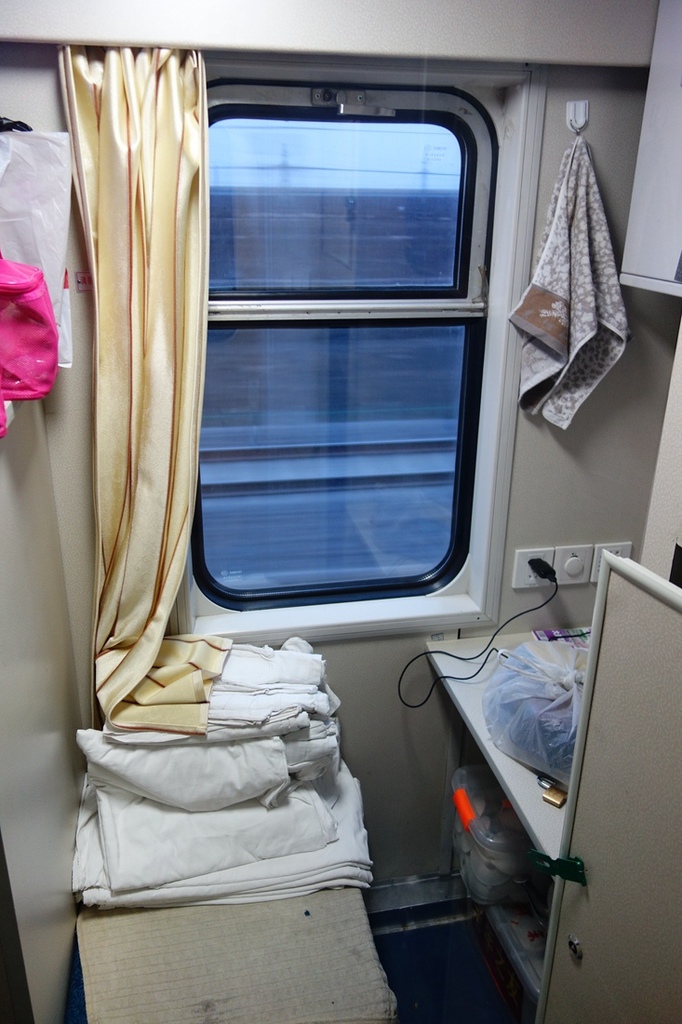 很多人會緊張的問,晚上睡火車上,我們的行李要擺哪裡,行李就擺在門口上方走到的頂頭,容量絕對足夠擺放。旅遊團常常會遇到很多緊張大師,吃的,住的,喝的,會不會冷都要先問一遍才安心,然後問完馬上又忘記,過一陣子又再問一次。