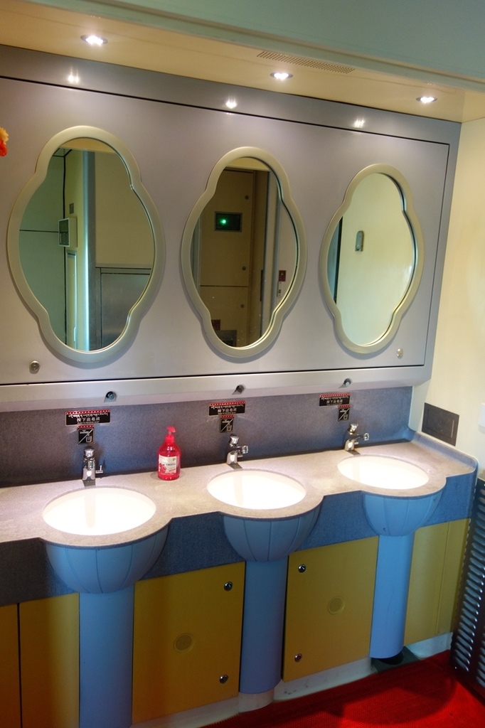 青藏鐵路火車的設施略好一些,鏡子都有造型。