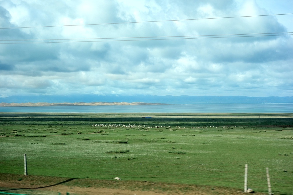 早晨時分,吃著早餐,喝杯咖啡,坐在火車上遙望青海湖,很舒服的感覺。
