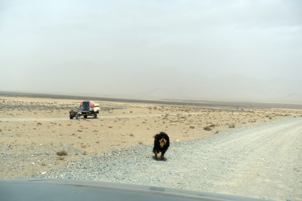 動物二號,牧民養的藏獒,一看到車輛經過就追了上來。