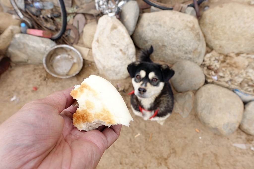 天氣寒冷,我們吃得很開心,也給狗狗吃餅囉。