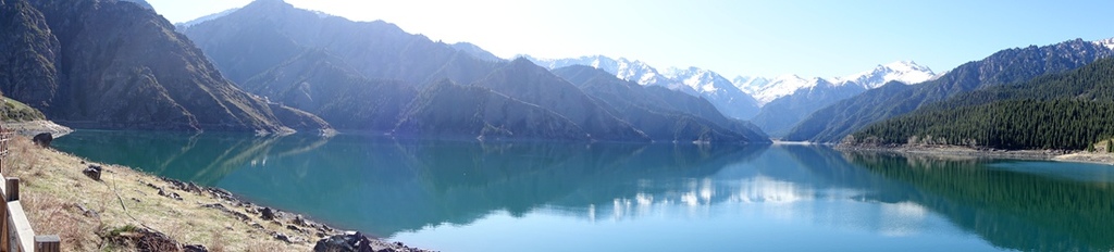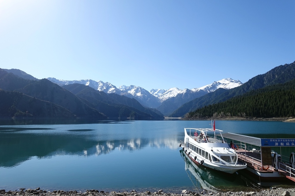 來到天山天池的時間最好在四月底左右,在四月中之前天池的水面結冰,湖上面是不能遊船的,如果你要到西王母祖廟,就必須走湖邊棧道到另外一個山頭,也得多花上一個小時時間。我們這個時候四月底五月初,剛好可以搭船了。