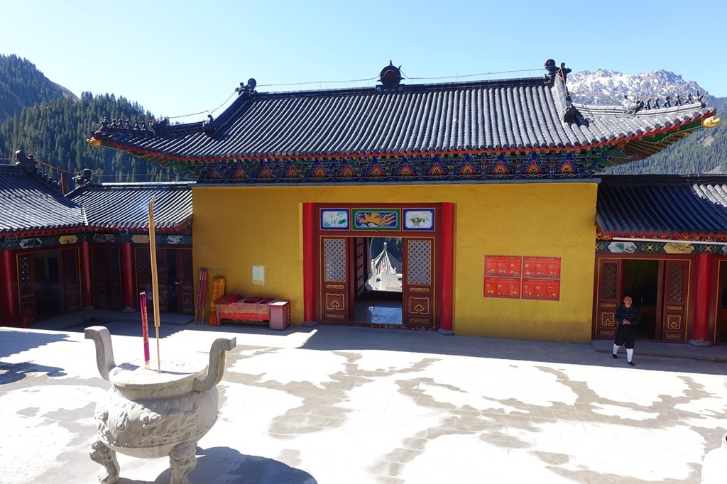 新疆天山天池祖廟正殿。我雙手合十朝西王母禮拜,千里前來新疆天山天池尋根,願來此朝聖者依切平安順利。