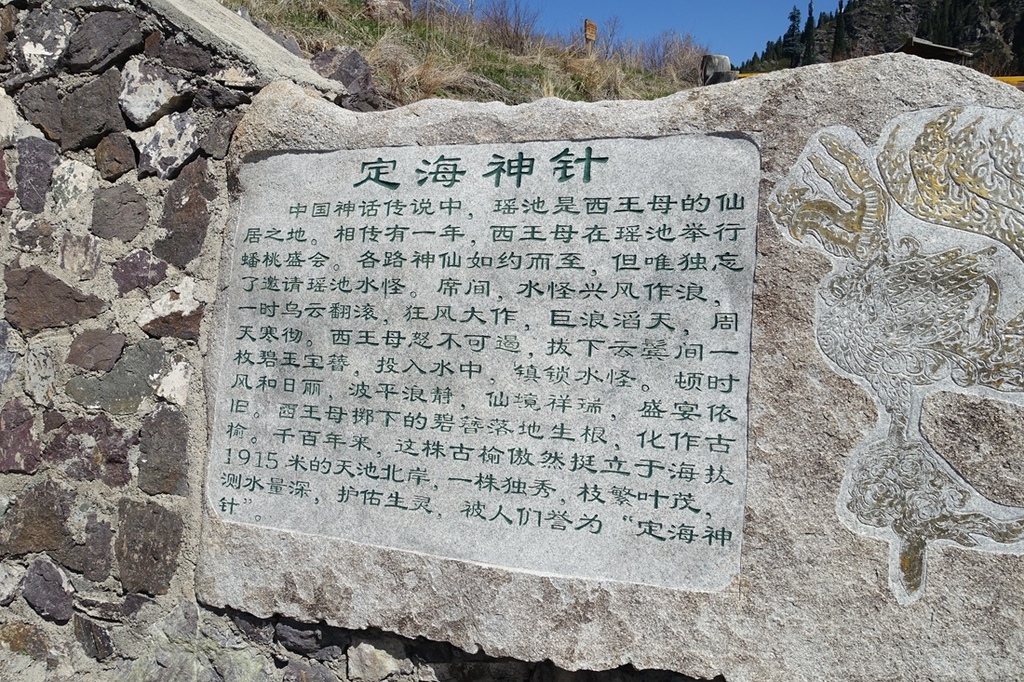 我們結束西王母祖廟的行程,搭乘遊船回到天池碼頭,碼頭旁有一處定海神針,是瑤池旁的古樹,有著神話傳說。
