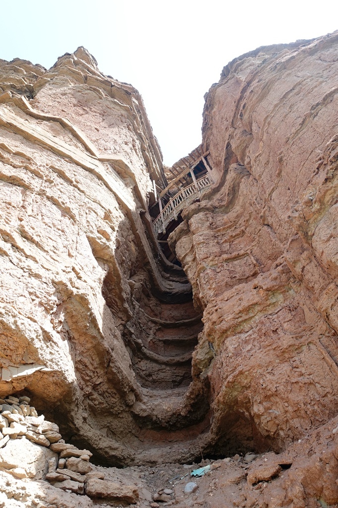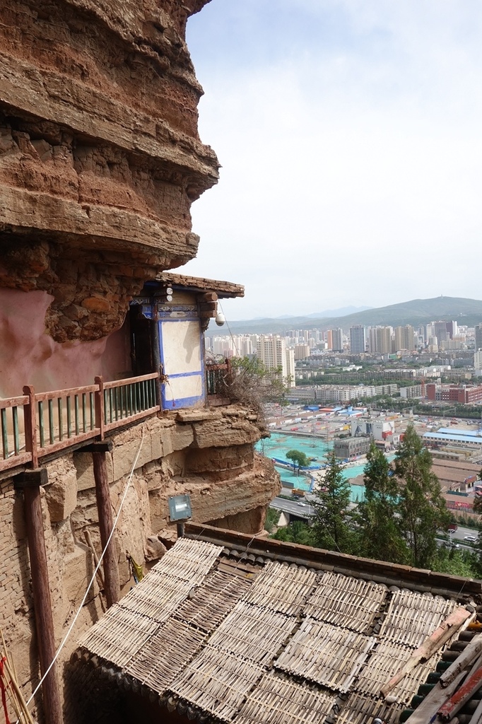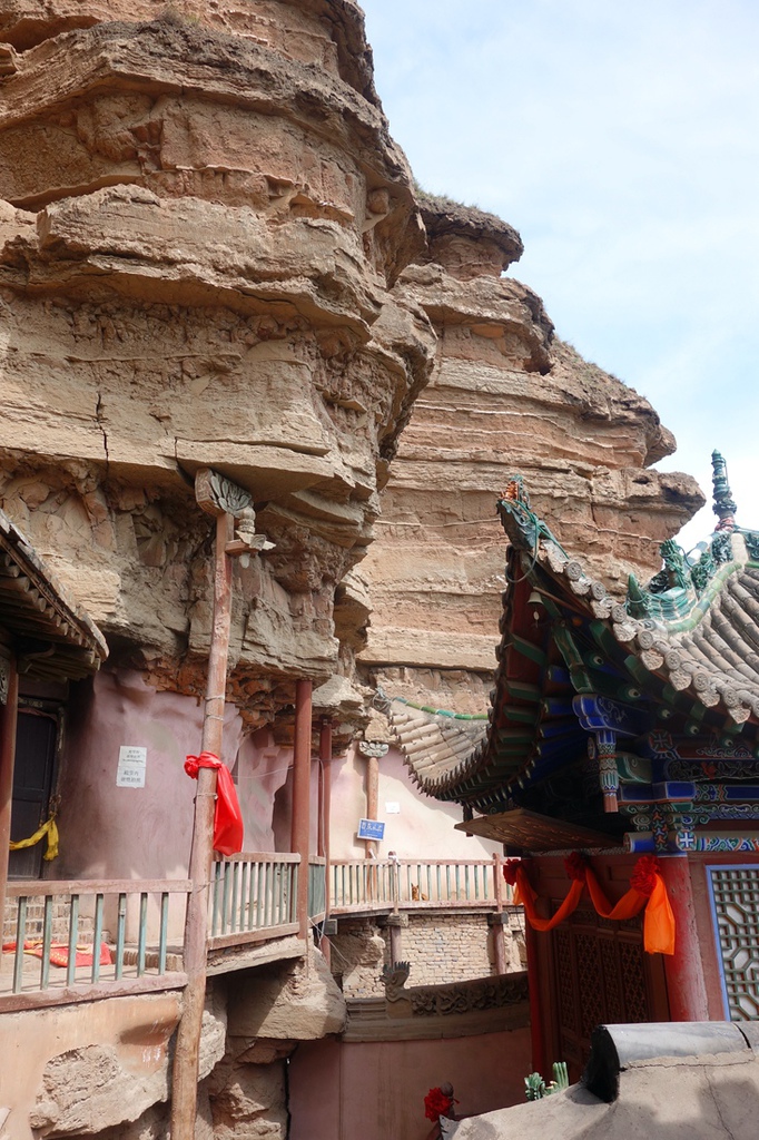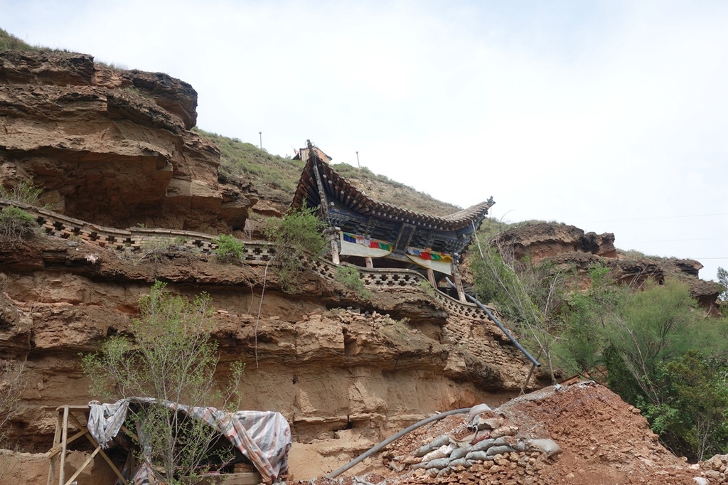 這裡就是九窟十八洞,許多洞口已經被蓋成道院,歷史悠久,在過去道路因為崩塌已經無法行走了,據說百年之前西域綠意盎然草木豐沛,由於氣候的演變導致環境大變,說不定百年前的土樓觀是綠意十足的寶山。