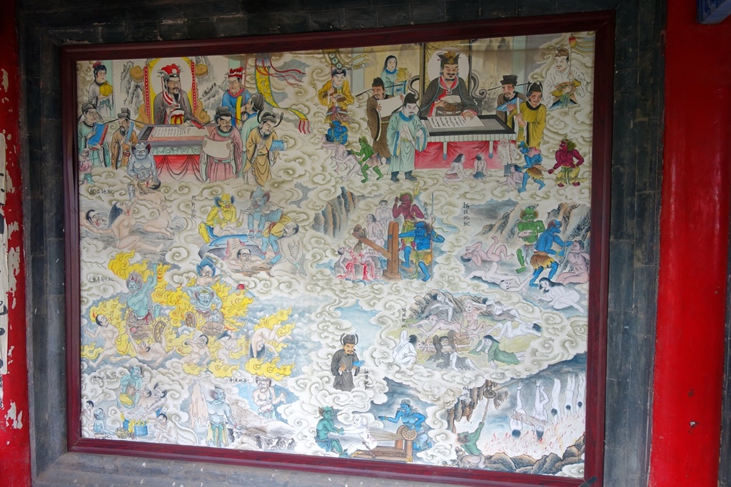 進入土樓觀內,最先看到的是土樓觀地獄壁畫,非常傳統道家的思想,諸惡莫做。有一次帶一個團過來,師父說地獄的空間是不舒服的,並不是真的帶你下油鍋,而是你的魂魄會到導引到一個被稱為地獄的空間,這個空間極冷極熱有如萬箭穿心,故稱地獄。