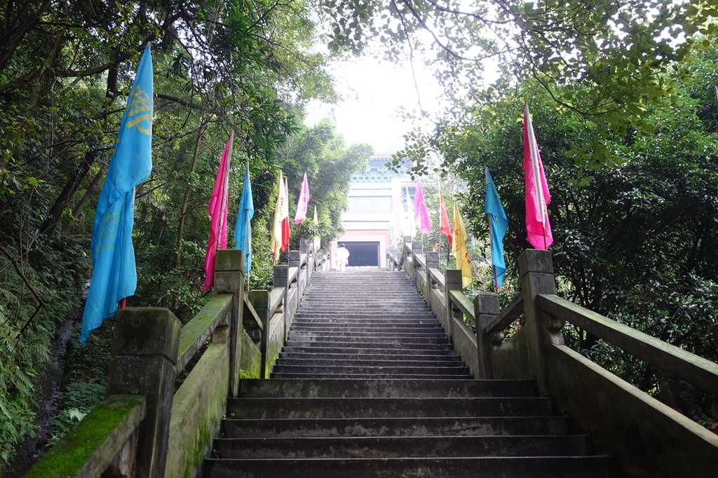 我來到了四川翠屏山,翠屏山位於繁華的宜賓市區旁的一座小山森林公園,有點類似台北的四獸山森林步道,我們上山搭乘山腳下的電瓶車,朝聖者手上許多拖著三太子神像,要百里登山是有困難的。