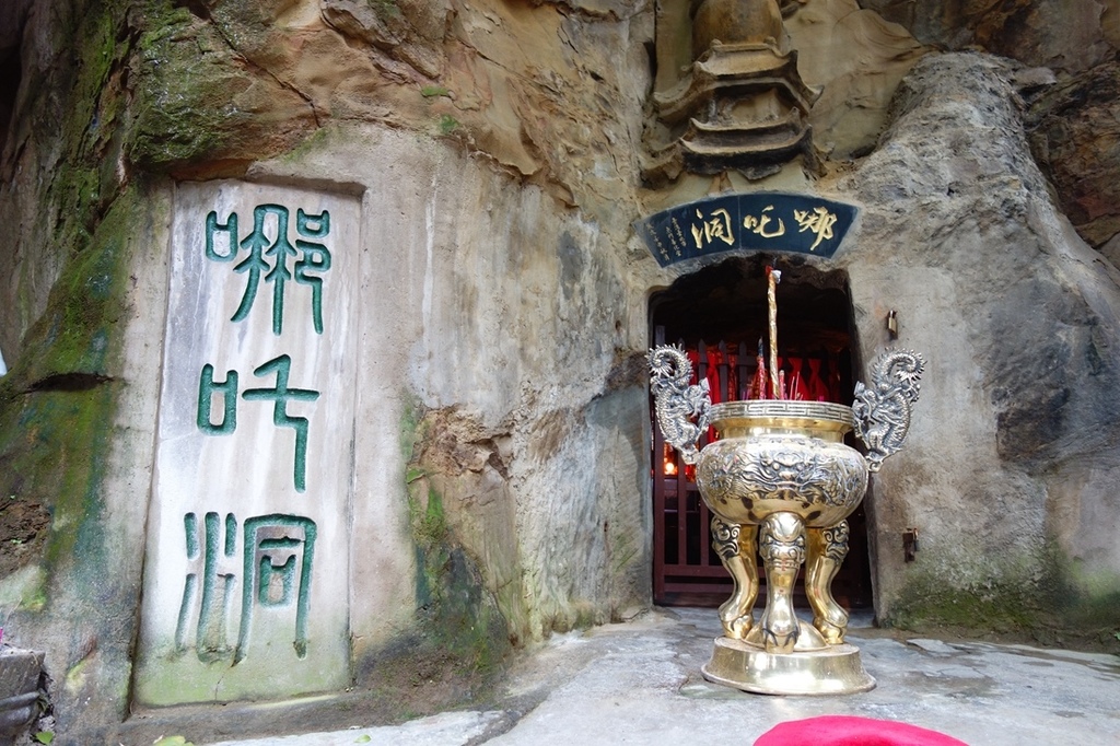 朝聖團來到哪吒洞,也會將神明請到洞內安置,等到儀式結束後再將神明請回。