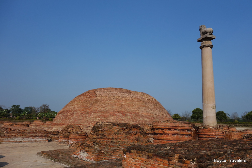吠舍離佛陀聖地下,此地矗立著一座完整的阿育王石柱,象徵的阿育王孔雀王朝強大無比,阿育王在印度立了許多石柱來護持佛法,一般阿育王石柱多朝向鹿野苑,象徵佛法初始轉法輪,只有這一座獅子吼的阿育王石柱面向拘尸那羅佛陀涅槃之處,這座石柱已經矗立在此千年不衰,在石柱下方依據考證,是佛陀最後一次說法之處,千年前的往事有這座阿育王石柱見證。