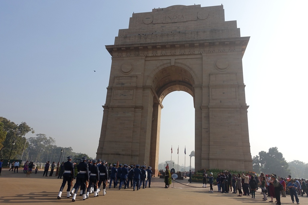 走在印度門下的印度衛兵