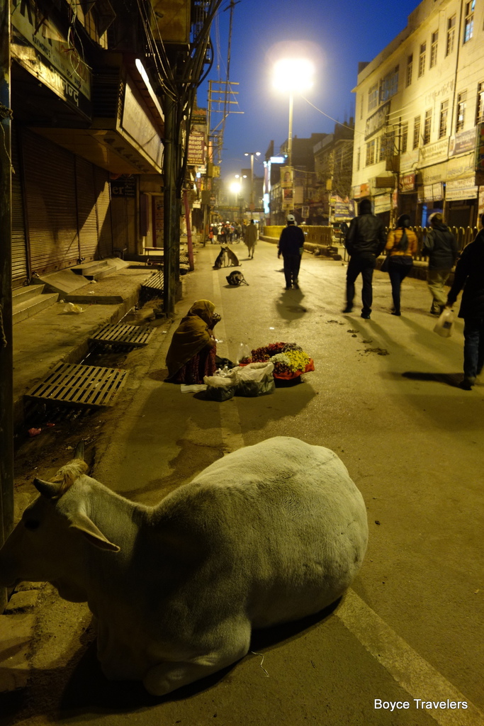 通往恆河畔的道路也戲稱為"聖牛之路",由於印度人是不吃牛的,整座城市充滿牛隻在街道旁遊蕩,地上有著非常多的牛屎,走路要小心採到一坨坨的黃金。