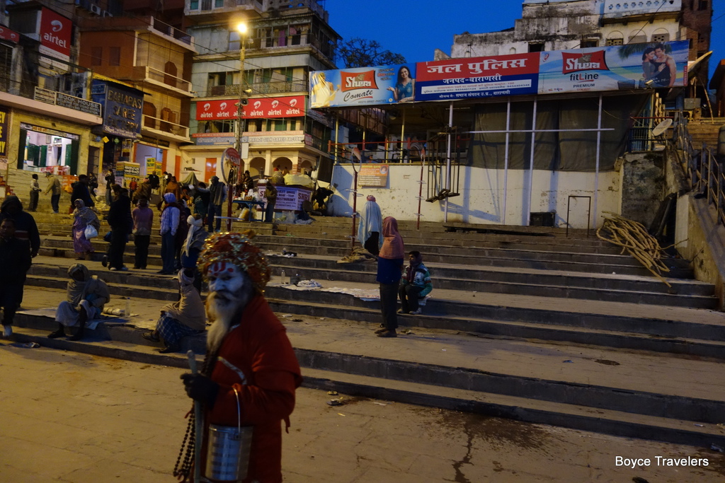 早晨的瓦拉納西氣氛異常詭譎,城鎮中充滿著印度教派與伊斯蘭教修行者,神出鬼沒在暗黑中出沒,還有部分城市武裝警察手持AK步槍走附近出沒,在這裡一度以為來到了非洲戰場,四周都是民兵虎視眈眈隨時準備開戰,深不可測的氣氛詭譎瀰漫在我們的四周。