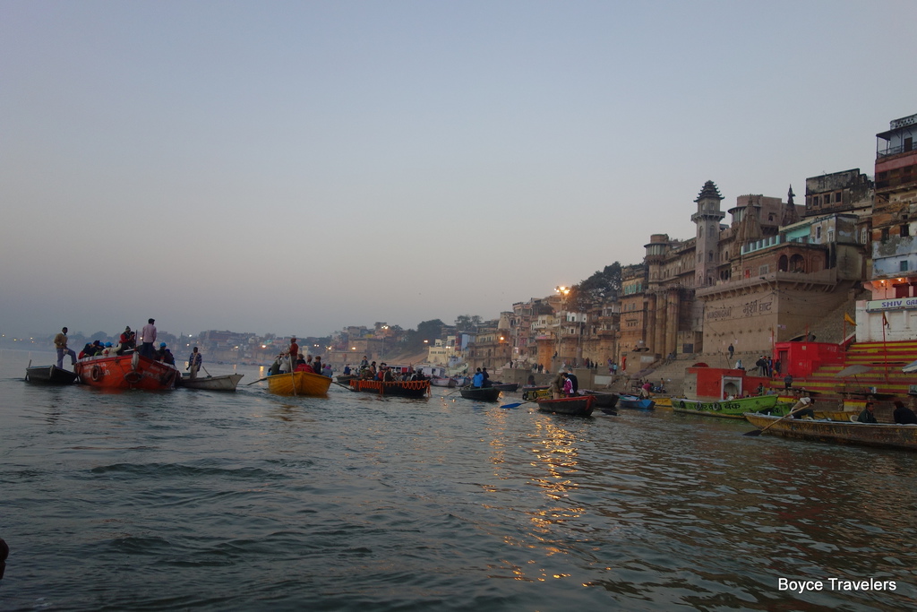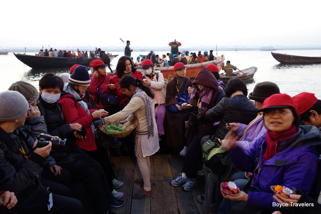 恆河日出之旅,我們搭上傳統的木船,每一艘船大約可以容納25-30人,足夠一個旅遊團體搭乘