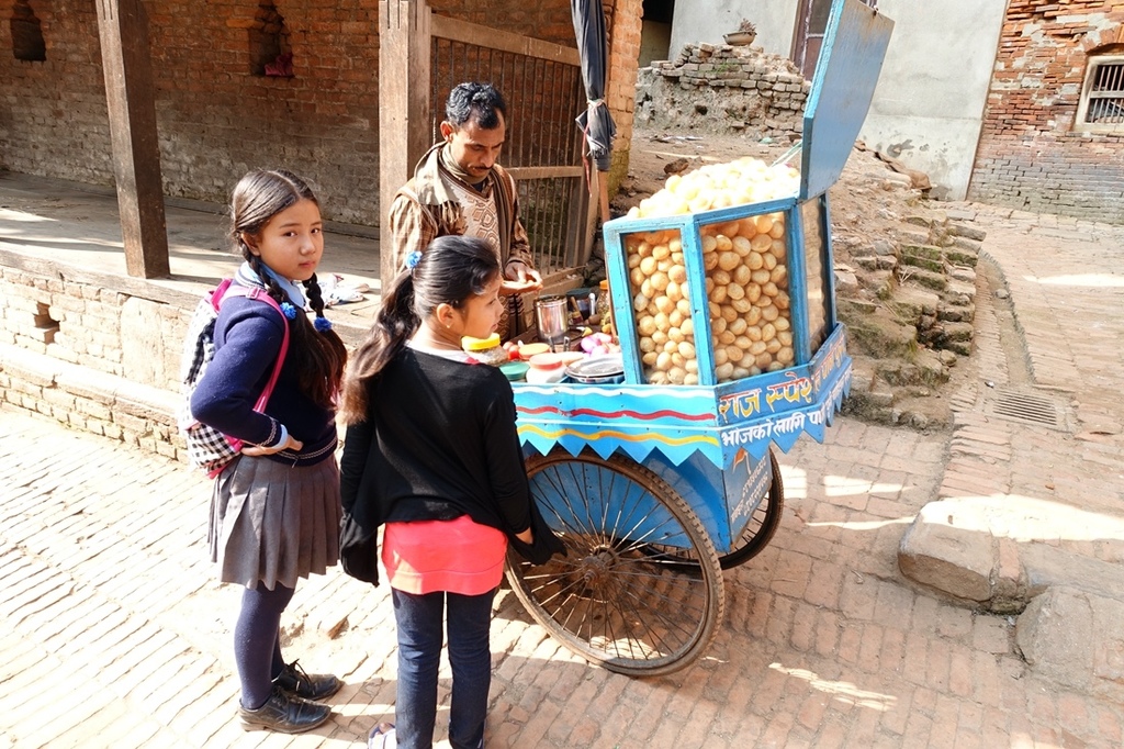 全套制服的尼泊爾學生,我對尼泊爾的印象就是土土灰灰的,但小朋友穿上了制服,真是有眼睛一亮耳目一新的感覺,小朋友正在買零嘴吃。