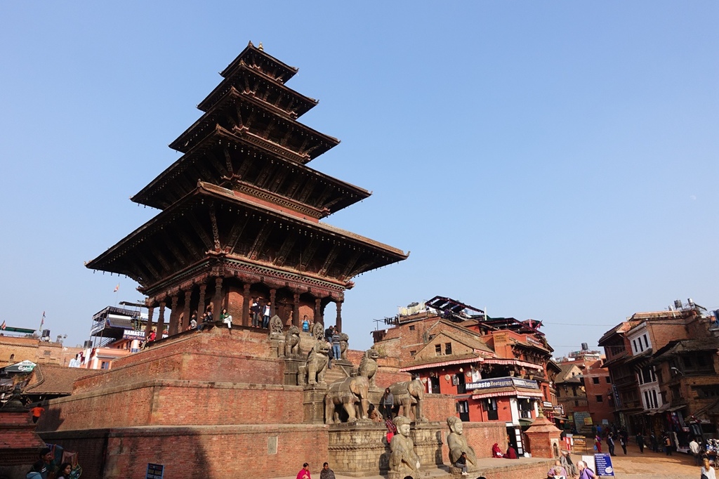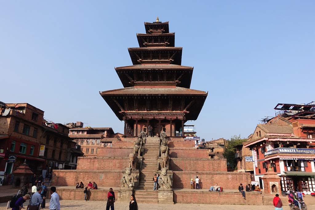 陶馬迪廣場著名尼亞波塔拉女神廟,此廟屬尼瓦爾風格,建於1750年,高度有五層,地基高度五層,廟宇為木造結構,高三十公尺。是尼泊爾最高的印度教神廟,也是當地的地標。塔頂呈層層排列,每層都有屋簷,而每一層的大型雕刻都相當精美壯觀。寺廟的五層平台,由第一層平台到第五層平台都立有一對雕像,分別是馬拉王朝大力士、大象、獅子、神鷹及希提拉克希米女神,越上層表示力量越大。(網路資料)