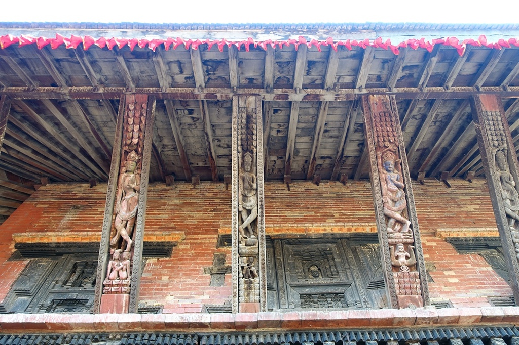 著名孔雀窗Peacock Window:是15世紀的黑色木窗,中心鏤空浮雕一隻孔雀開屏形象,經歷數百年依然高傲地挺立著。雕刻精美,構圖奇妙,是尼泊爾木雕傑作,巴特岡藝術的標誌圖形。