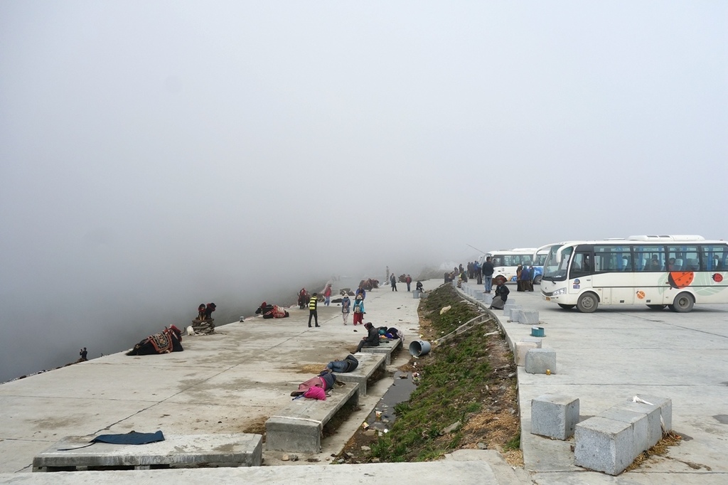 轉眼一瞬間,濃霧飄來把山頭蓋住了,瞬間看不到羊湖了,我們該上路出發了。