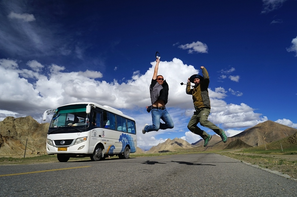 西藏的公路修築的一馬平川,路邊停車跳一下沒問題,我身強力壯是不會高山症的,西藏大多數路況都是很良好的,遊覽巴士即可通行,一般來說不需要用到吉普車輛,人數較少的游客可以租用15人座小巴士,除非到了後藏阿里無人區路段,可以考慮租用越野車輛前往攝影探險。