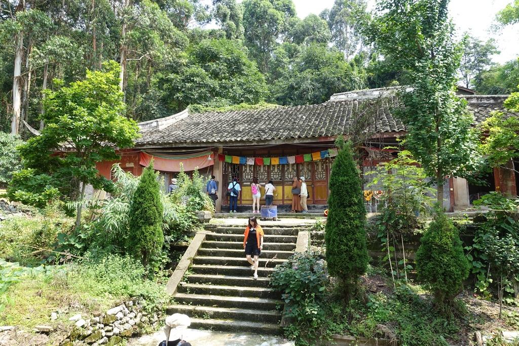 大約走15分鐘,可以見到一處古樸的寺院,這裡就是中三昧,路上偶爾可以見到摩崖石刻,中三昧的感覺與下三昧完全不一樣,是一處隱居在山林之中的古剎。