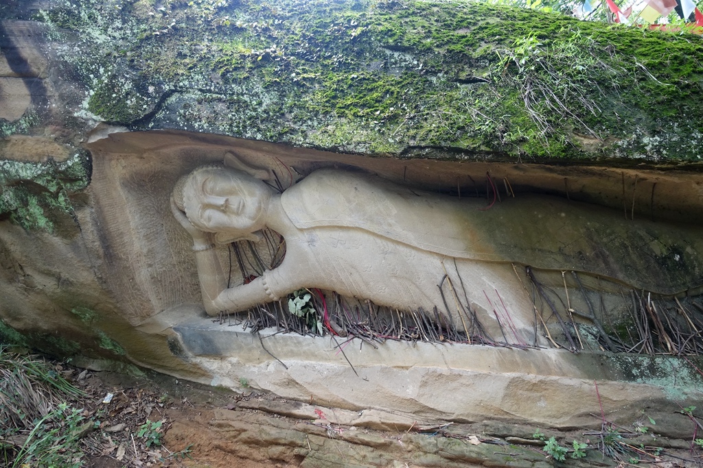 帶約20分鐘的路程,逐漸靠近上三昧,途中會經過一處臥佛摩崖石刻。這一段山路也是最陡峭的,筆直的階梯走到大家不要不要的,一定要堅持到底。