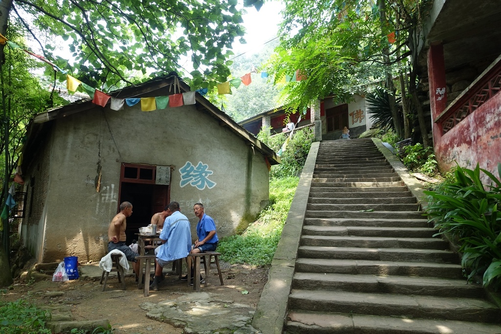 歷經千山萬水設跋涉,上方就是上三昧禪林,路邊的阿伯正在泡茶聊天,我們滿身大漢漫步前進。