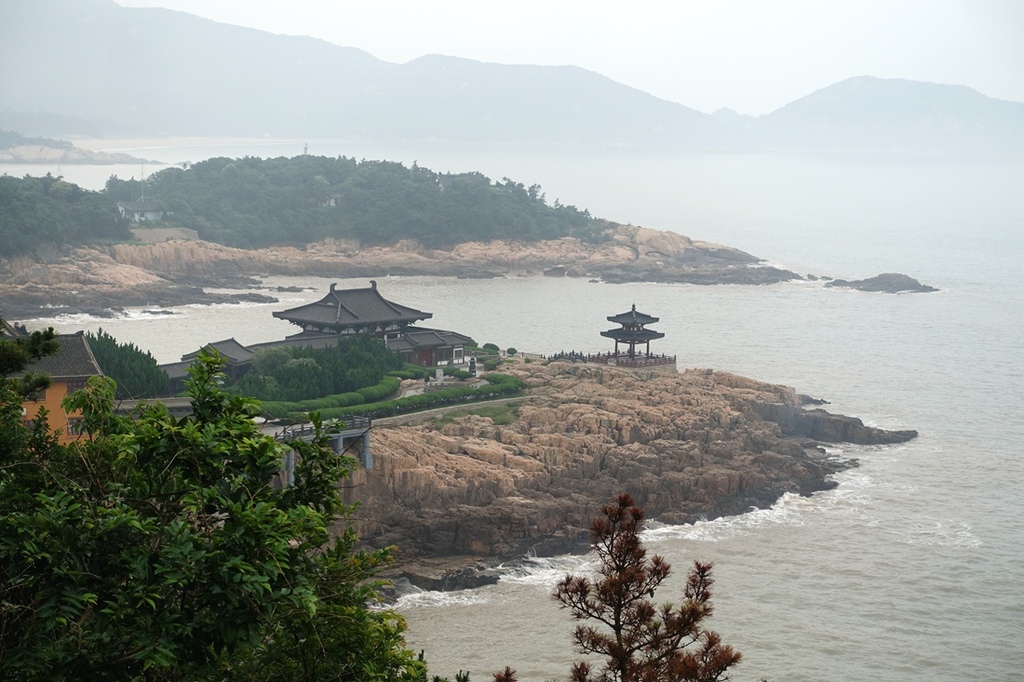 遠眺不肯去觀音院與潮音洞,南海觀音菩薩豎立在普陀山上,是許多朝聖者來到普陀山必定瞻仰之處,南海普陀山,殊勝之旅!
