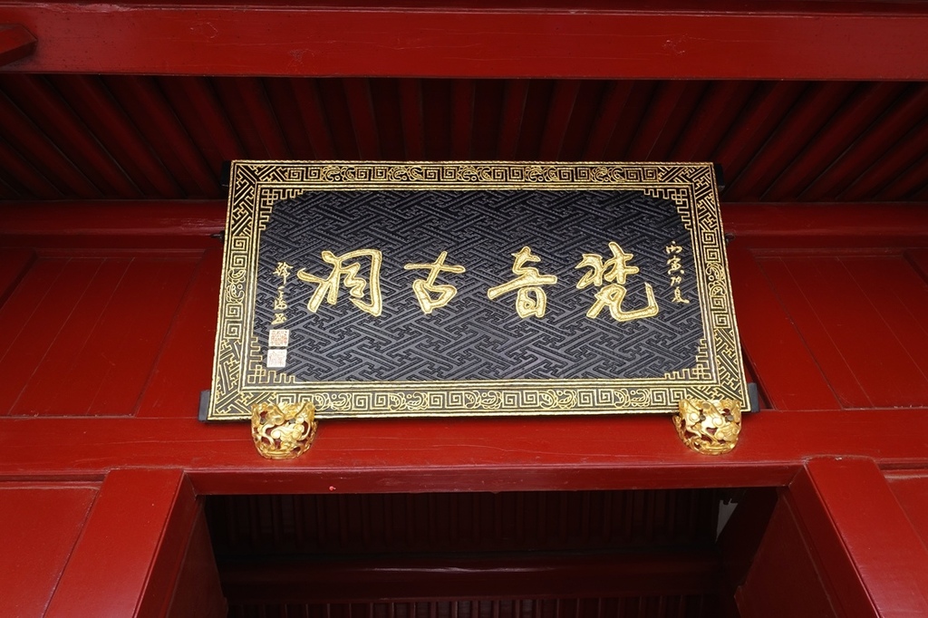 梵音洞瞻聖閣供奉的是千手觀音,不過我目前看到這尊菩薩沒有千手,此處的面積相當小,寺院建築在海潮洞的中間,遊人可以站在寺院內眺望梵音古洞。