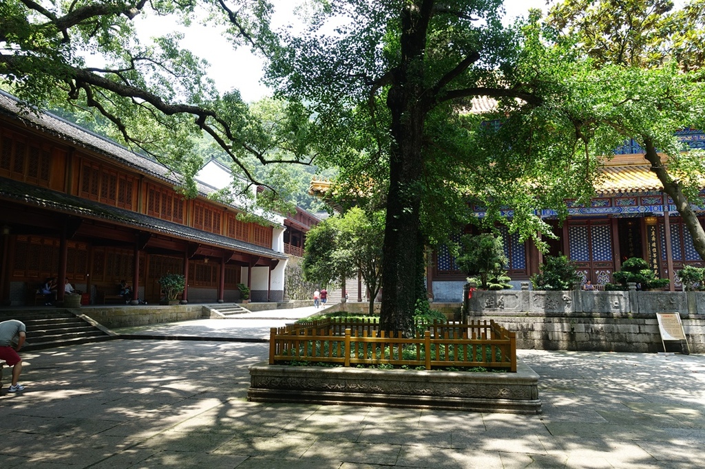 天王殿前古樟成林,眼前的法雨禪寺大字,成為法雨寺最著名的地標,繼續穿過天王殿前行。