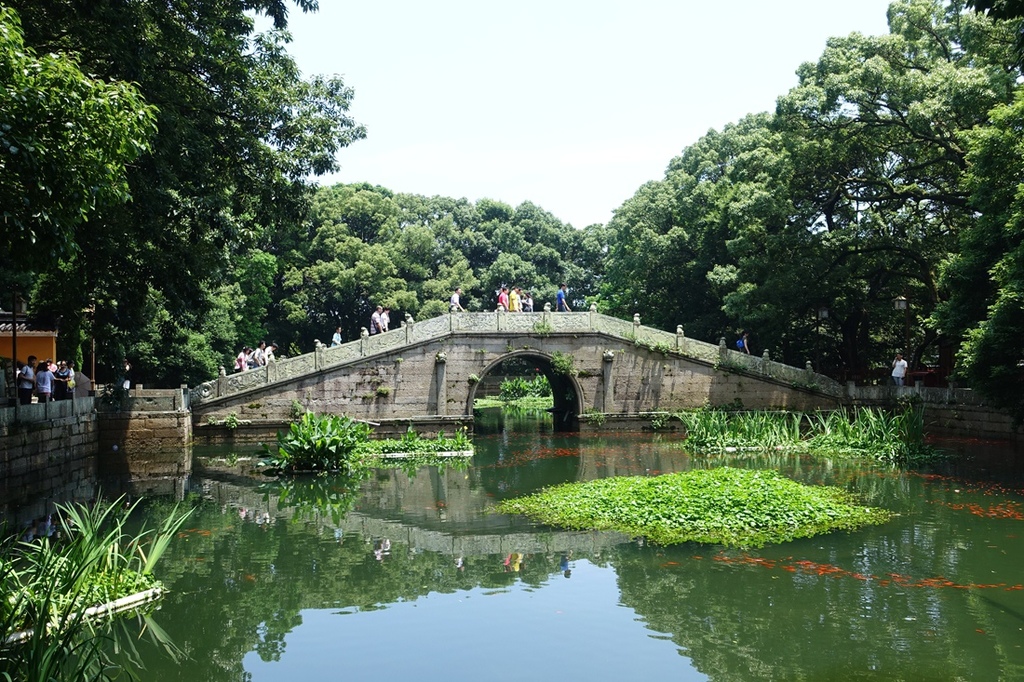 在普陀山島上遊客需要搭乘環島公交車或環島包車,才能前往普陀山各個寺廟景點,我們來到了傳說中的法雨寺,走過一段石橋,石橋下方紅色鯉魚悠然自得的游泳。