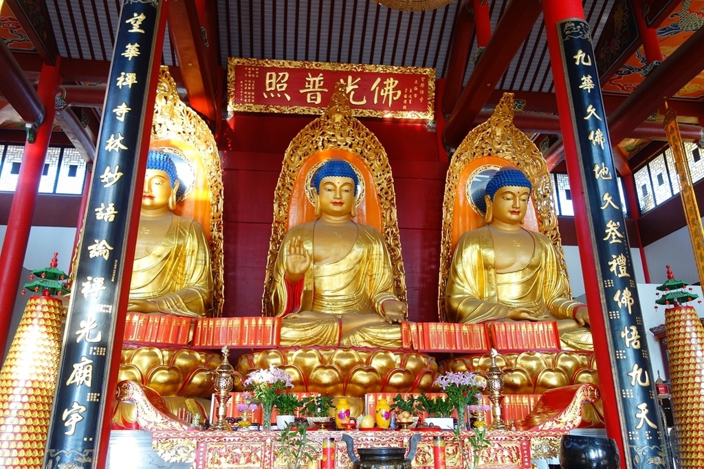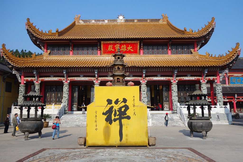 經過三個多小時車程,我們抵達了望華禪寺,這座禪寺從外觀看過去相當新,目前的寺院約在2003年逐漸興建起來,先前的古剎尚未達到山寺的規模,由於此寺九華山上寺廟為分院,故進行修建,形成現在的規模。